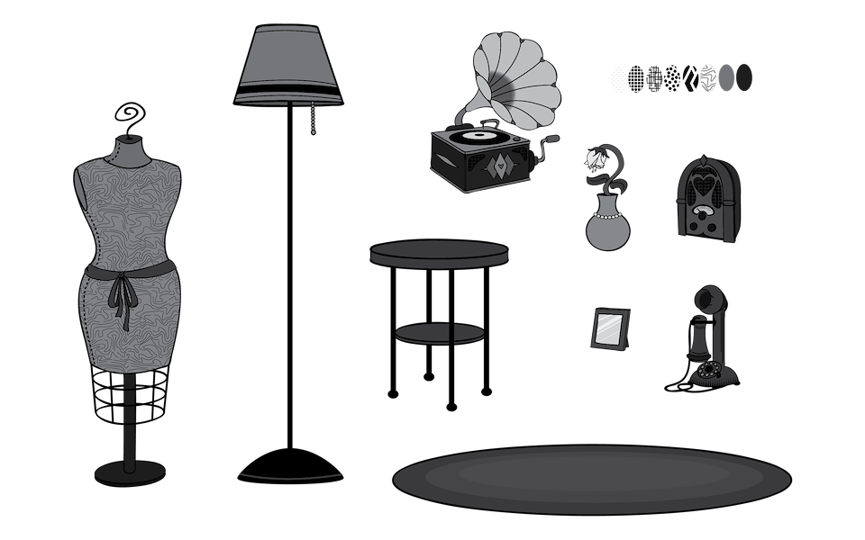 Some prop details, from my dance hall illustration
