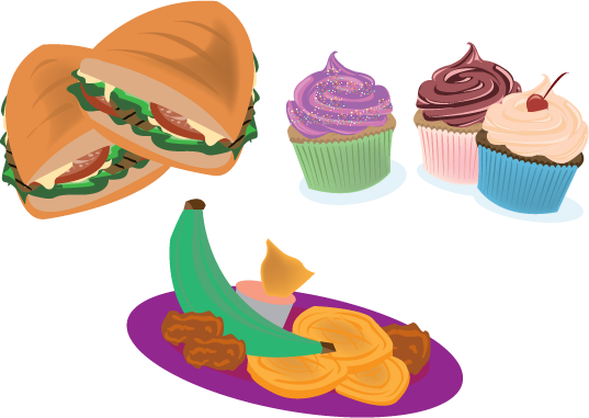 Cartoony food series created for a 2012 promo campaign for Sol Food of San Rafael